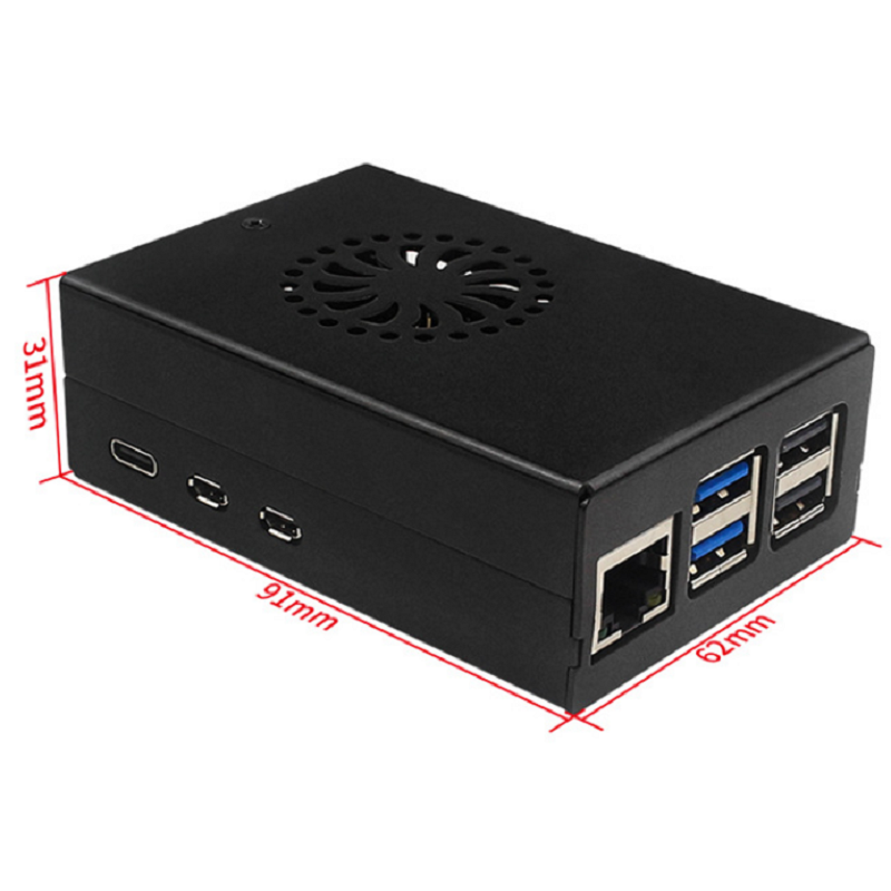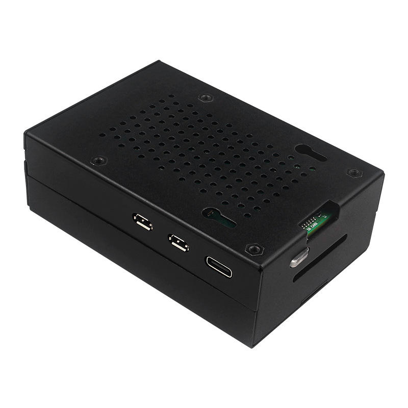 Aluminum Alloy Protective Shell for Raspberry Pi 5 Black Metal Case Cooling Fan Radiator Compatibility Electronic Modules Kits